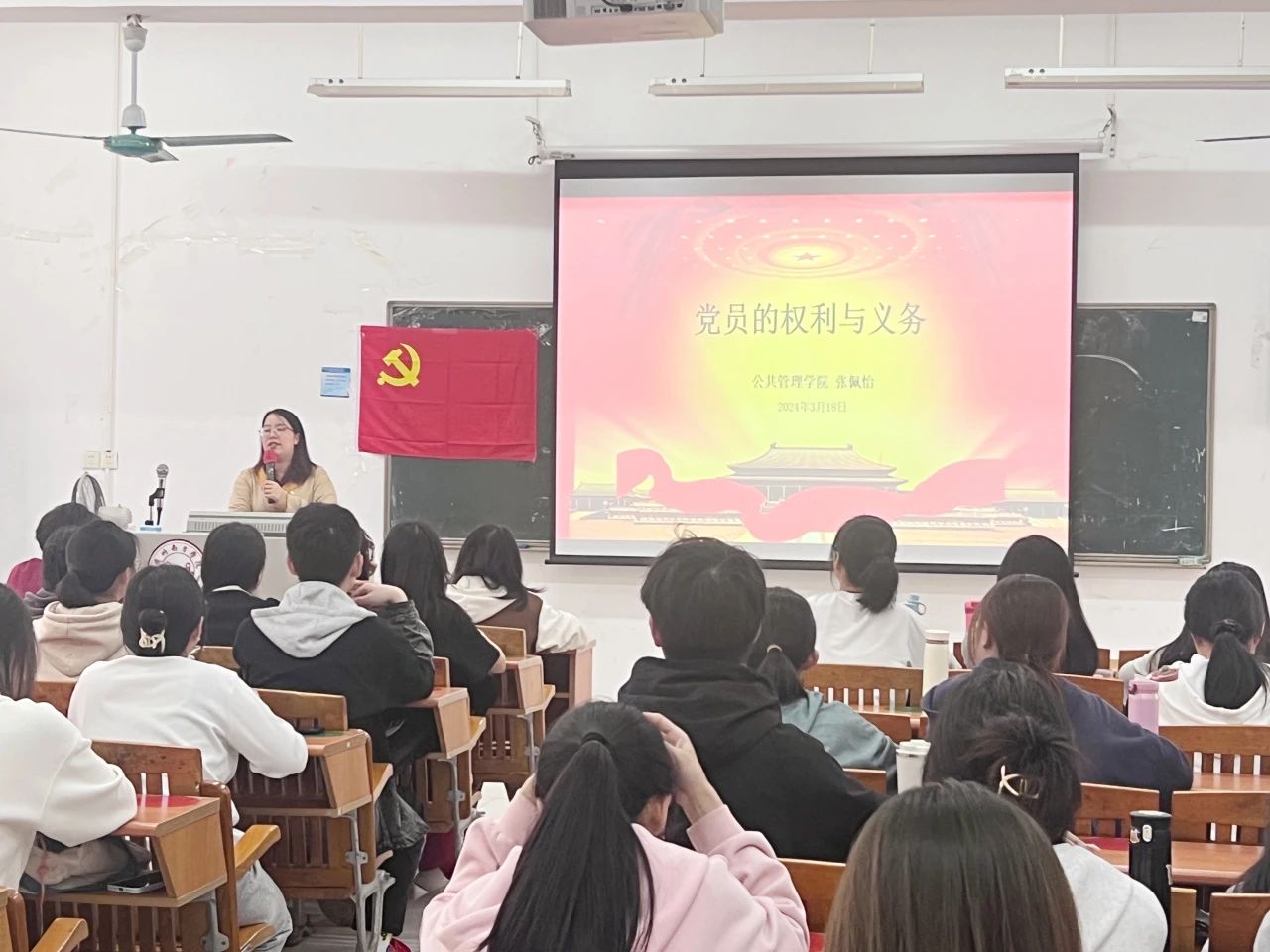 3月18日,威廉希尔中文网站党总支副书记张佩怡老师开展了主题为《党员的权利与义务》的党课培训。此次党课详细讲解了党员的权利与义务的基本内涵,强调了二者之间的关系及其重要性,同时指明了大学生如何正确行使党员权利,履行党员义务,鼓励同学们敢于担当且积极作为,争做合格党员。