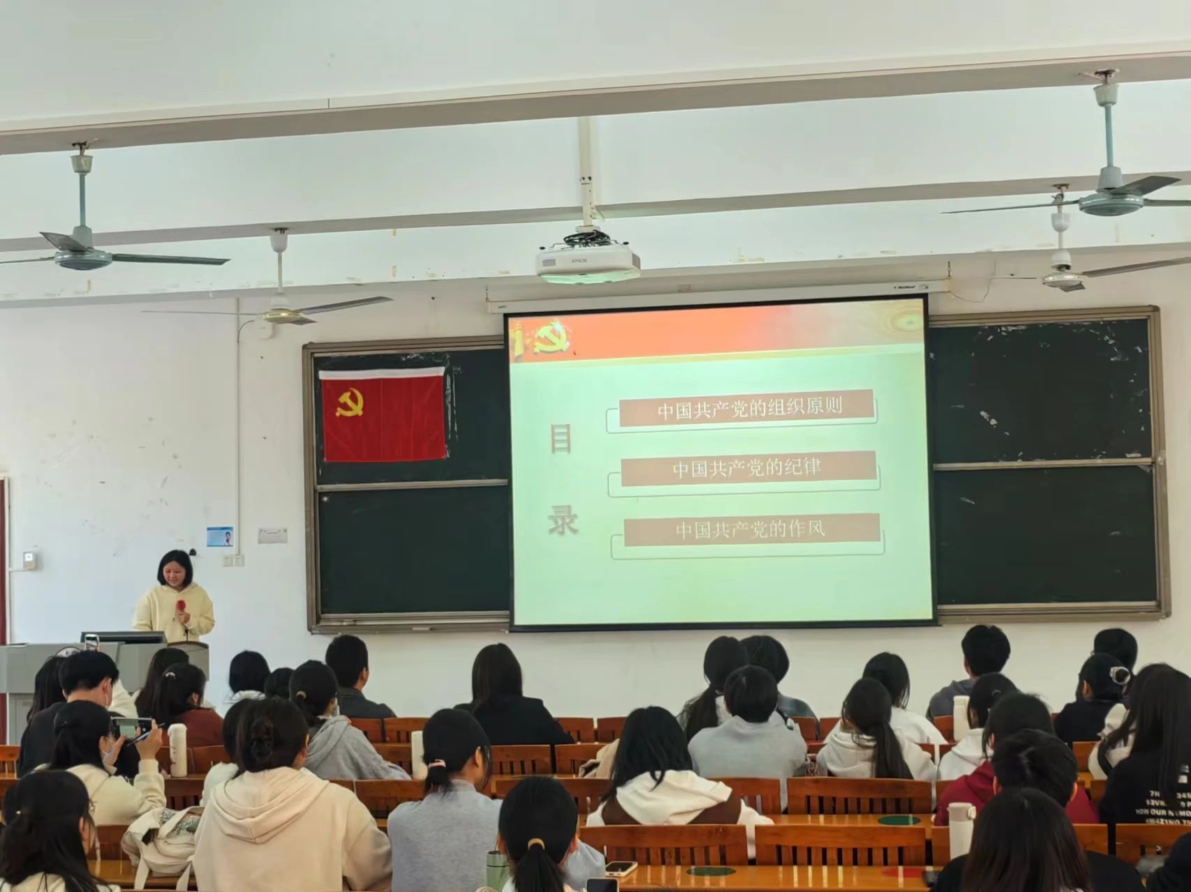 课程的最后,钟嘉颖老师希望同学们能够以党员的标准要求自己,以模范党员为榜样,践行党的优良作风,规范自身行为,立志做有理想担当的新时代好青年。
