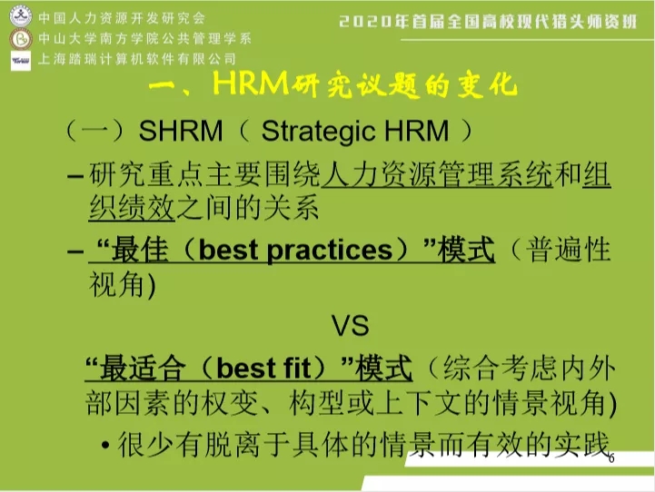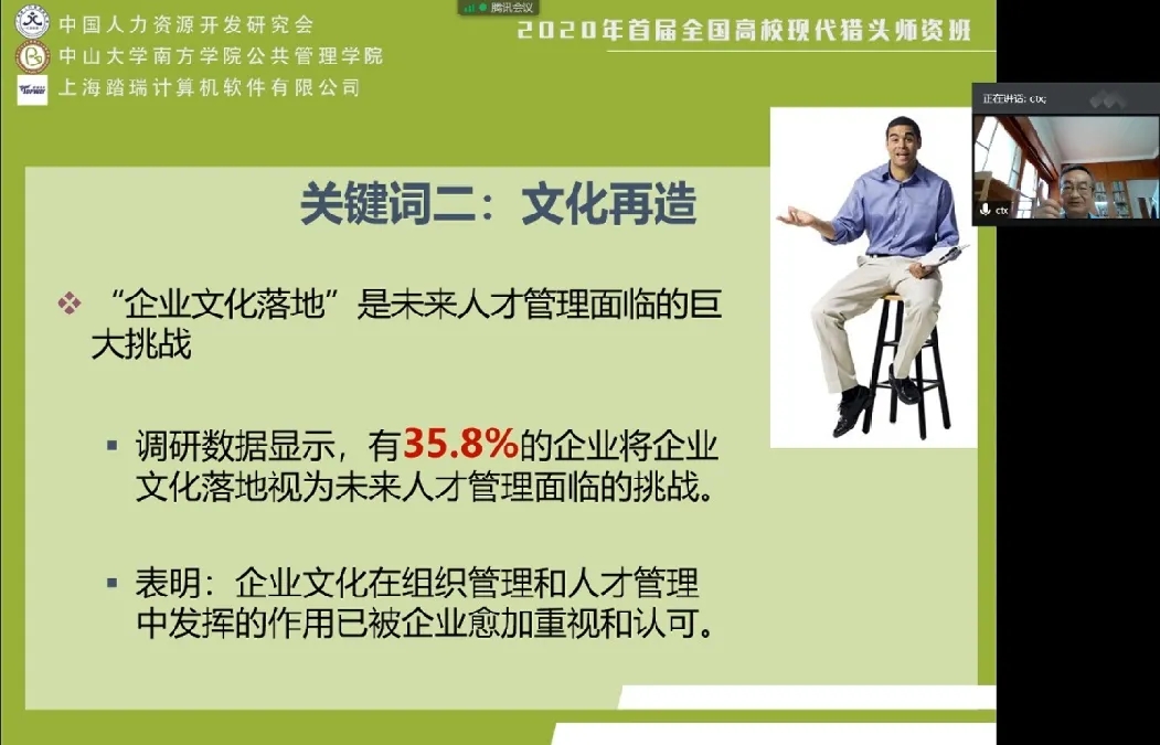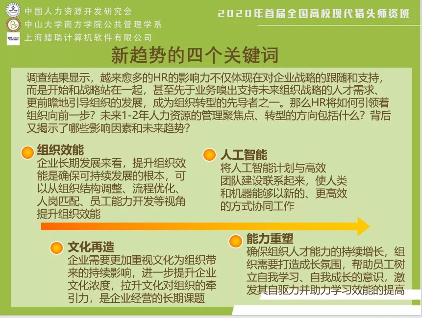 2020年8月8日上午, 由中国人力资源开发研究会主办,中山大学南方学院威廉希尔中文网站、中山大学南方学院国家猎头研究与培训中心承办,上海踏瑞计算机软件有限公司协办的首届全国高校猎头师资班(线上班)开班。