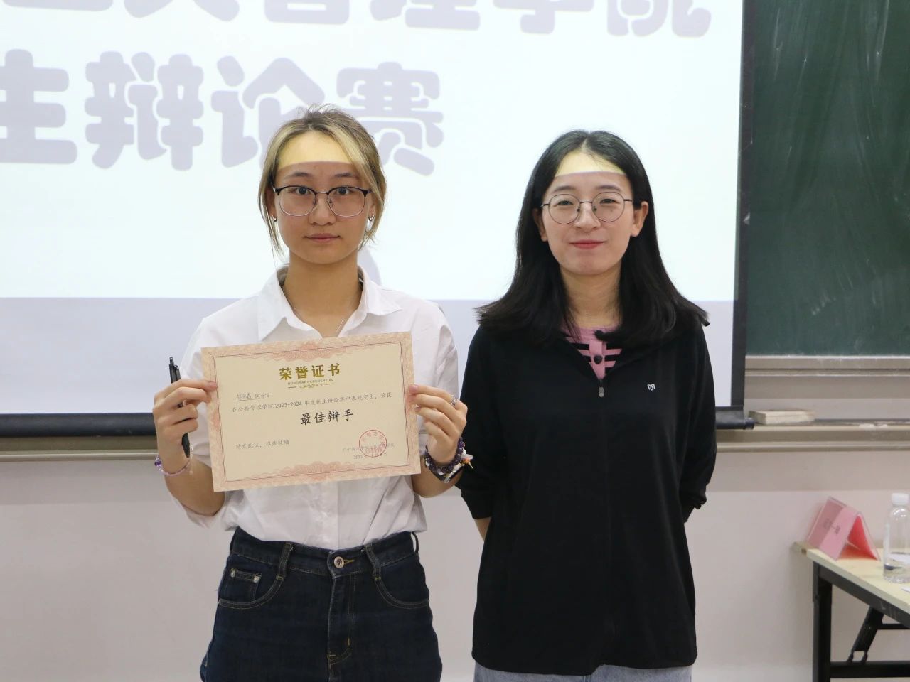 11月8日下午,在7-302举办了本次辩论赛的决赛,莅临本次辩论赛的嘉宾是23级辅导员孟亚丽老师。出席的评委有21级校队队长佟令页同学,21级校队队员梁碧瑶同学,22级纵横辩论队副队长、校队队员吴嘉鑫同学。