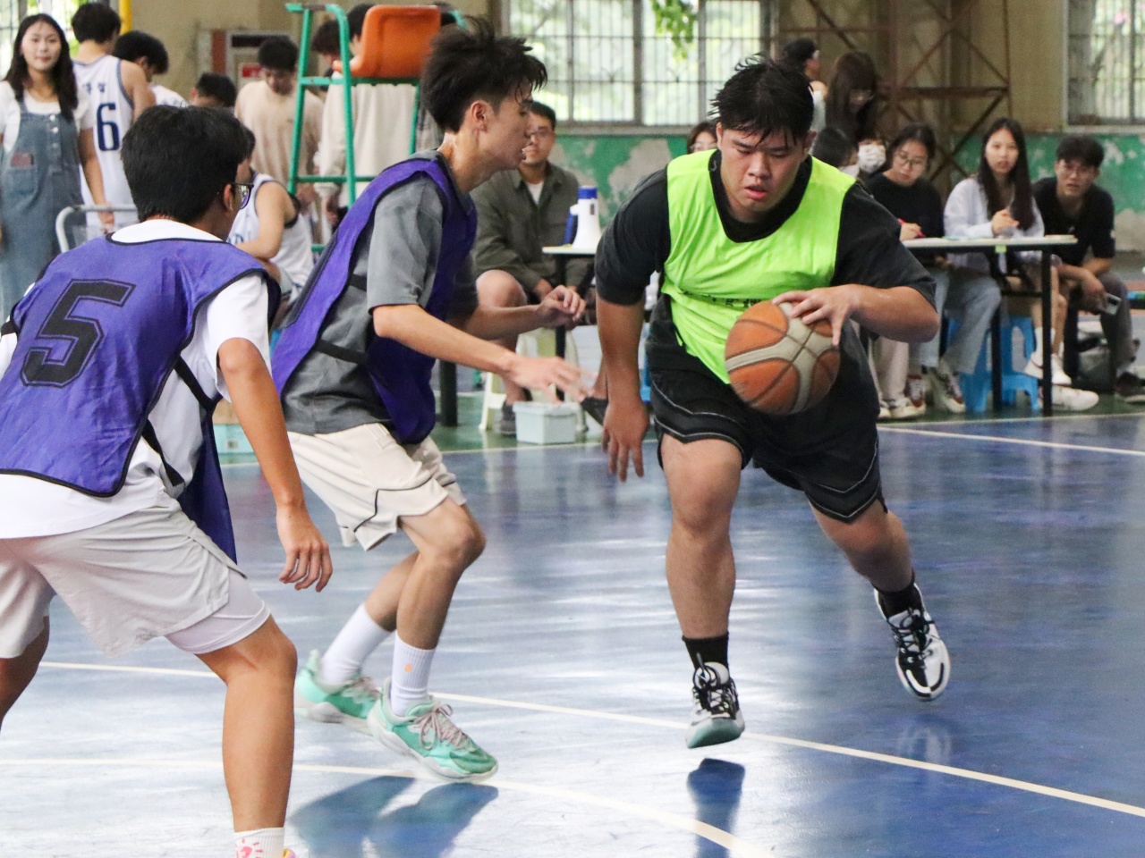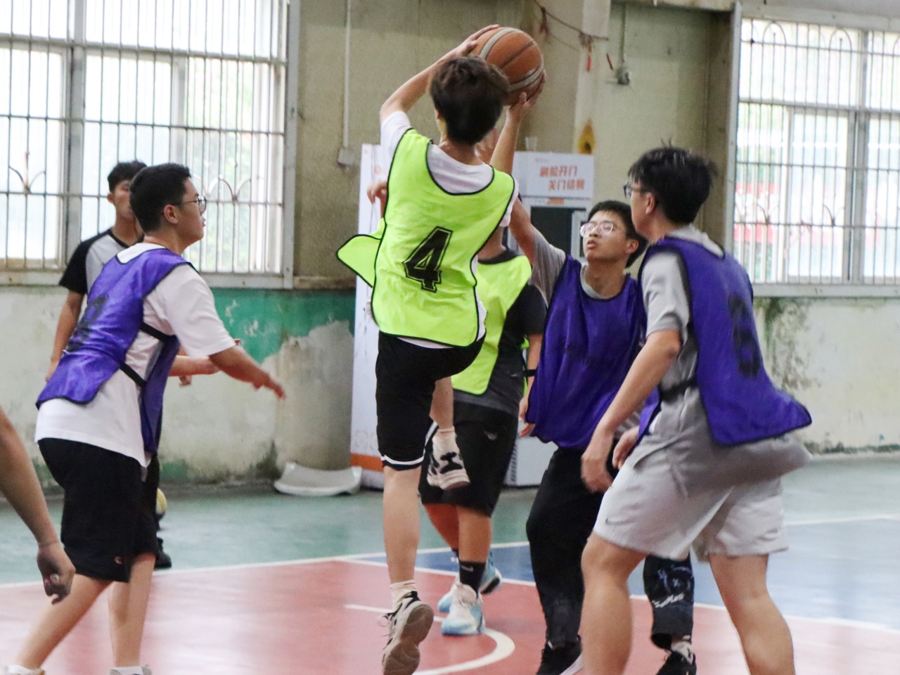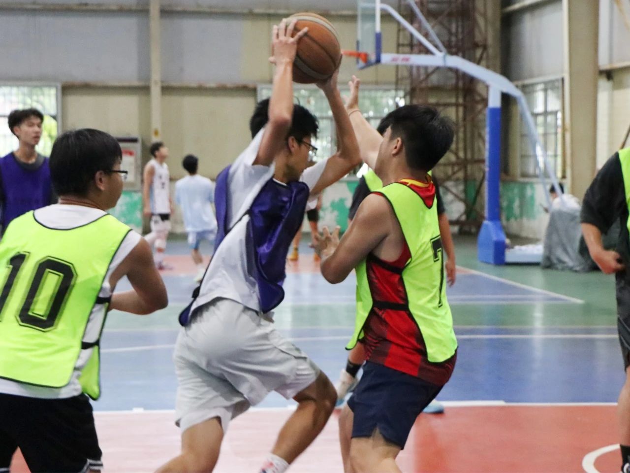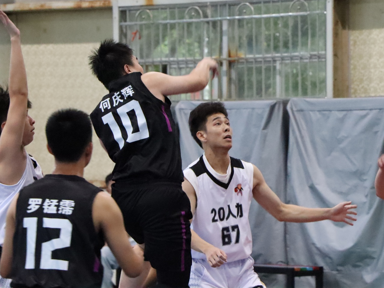 第二节比赛很快开始,人力队攻势猛烈,14号张跃洋同学接连投出两分球,拿下四分。7号陈权德同学也顺利拿下2分,公关队5号许培昇同学不断寻找时机抢夺球权,在队友配合下精准投篮拿下6分。在这压力下,人力队4号陆俊鸿同学和14号张跃洋同学也接连拿分。公关队不断发力,10号张圳洋同学和5号徐培昇同学也不断进球为队伍获得分数。最终第二节比分为10:14。
