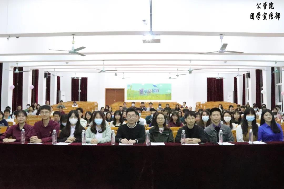 陈柏宇老师首先对结束任期的同学表示衷心的感谢,同时他认为同学们在团学中每一次工作经验的积累都是难能可贵的,能从团学中学到的不仅有工作经验,更重要的是为人处事的能力,而且还能在这个过程中不断完善自我,追求卓越。最后陈老师祝愿同学们都能有一个美好的未来,也祝愿公管团学能越来越好。