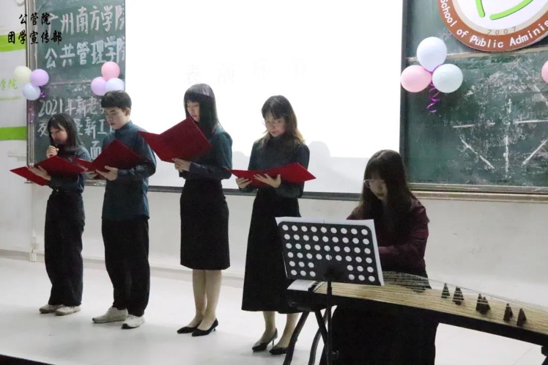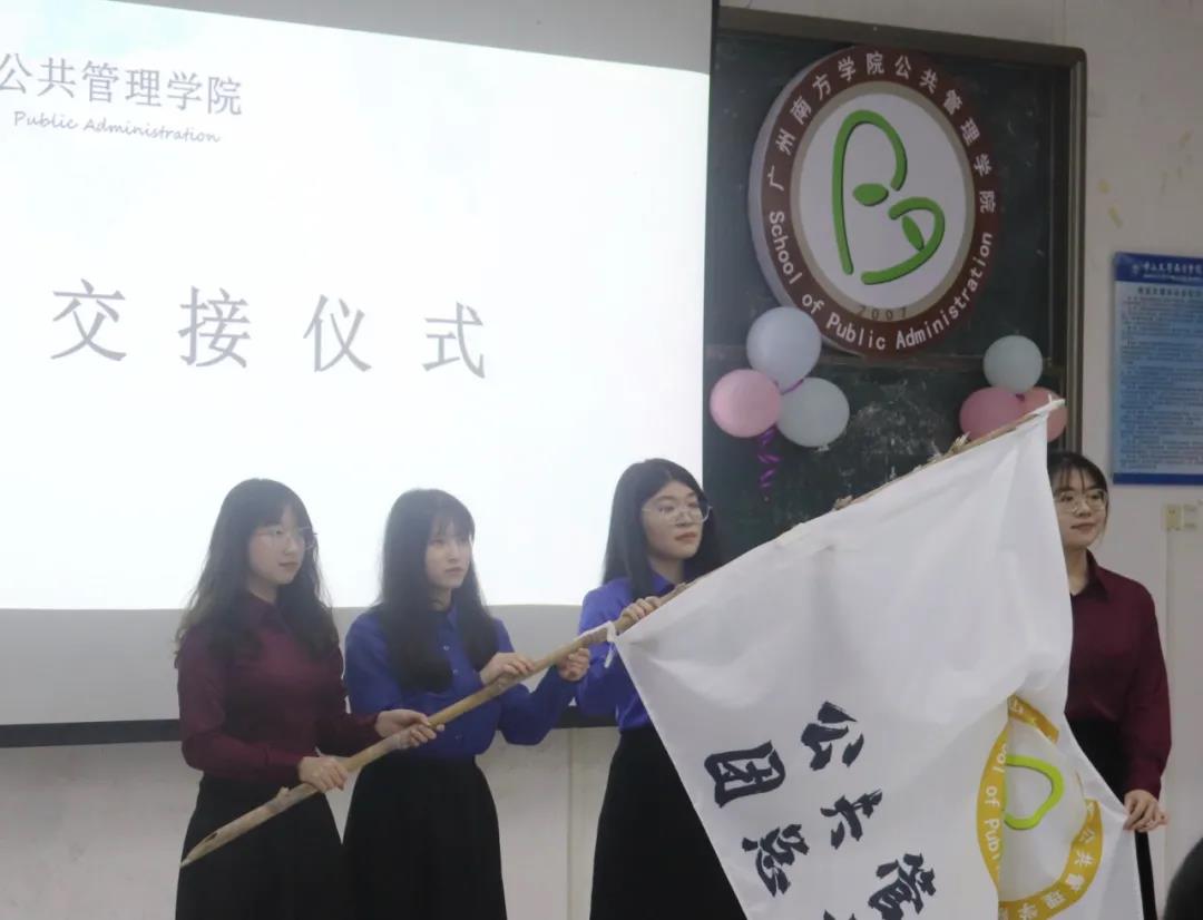 接着进行交接旗仪式,新一届团总支副书记马铭蔚同志与学生会执行主席张文峰同学在上一届团总支学生会干部的手中接过公管团学的代表旗,代表着新老委员的交接,也代表着公管团学的传承。