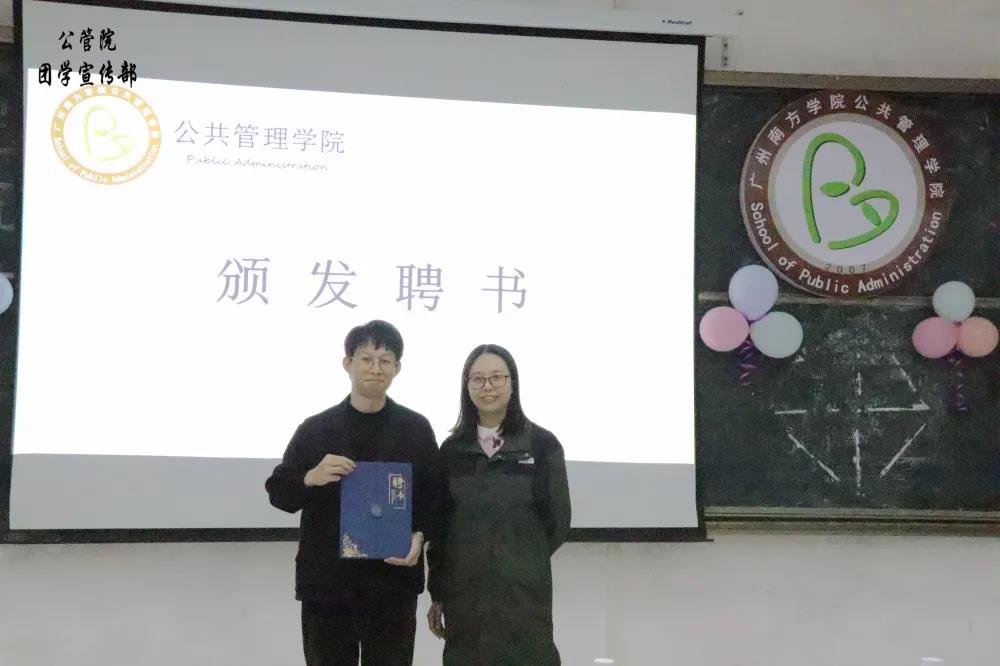 紧接着赖昀充老师和陈柏宇老师为上一届主席团、各部门正副部长、主次负责人及附属队伍正副队长颁发聘书。