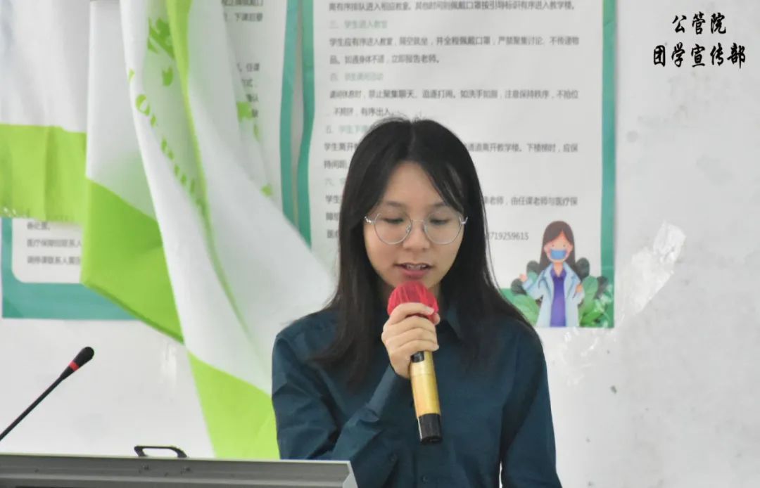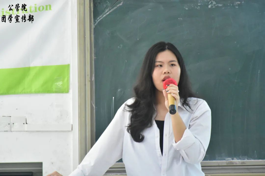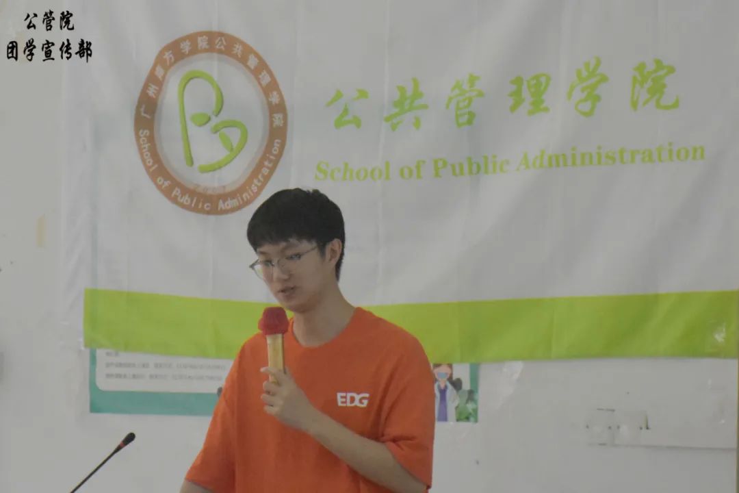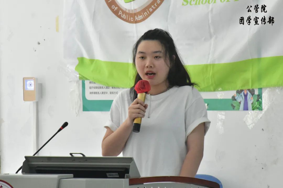 吴婧仪同学分享了自己从小干事成长为部长的心路历程。她在每个工作中承担着不同的角色,培养了自己的组织领导能力、策划能力、分析问题能力等等。最后,她引用一句经典的话:“永远不要为自己的努力而感到羞耻,不劳而获只是神话”,希望同学们要勇于尝试,不要觉得会失败就不去做。