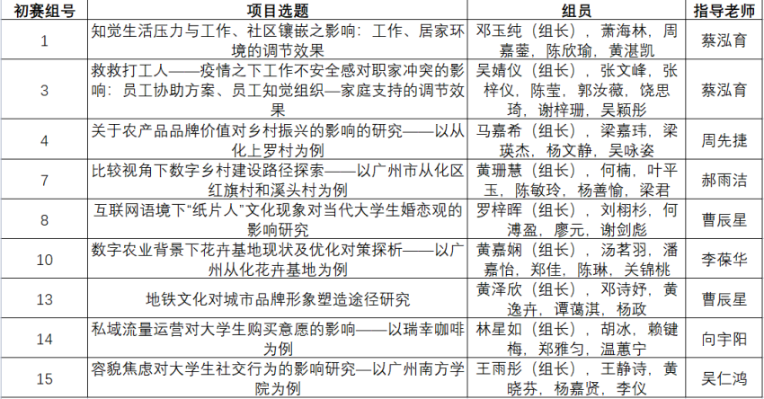 恭喜第一组、第三组、第四组、第七组、第八组、第十组、第十三组、第十四组、第十五组,获得案例大赛决赛的入场券。