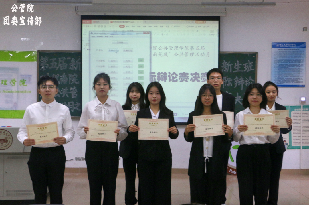 获得“冠军”的班级是文化产业管理二班,获得“亚军”的班级是行政管理二班,获得“季军”的班级是行政管理一班。获得“最佳辩手”称号的同学分别有叶志成、谢仪鸿、林瑞敏、杨淑银、于奕涵、朱恒俊、徐丹丹、滕伟毫、黄芊楠、陈烨、叶凤、刘幸平、伍慧琳、钟钰婷。