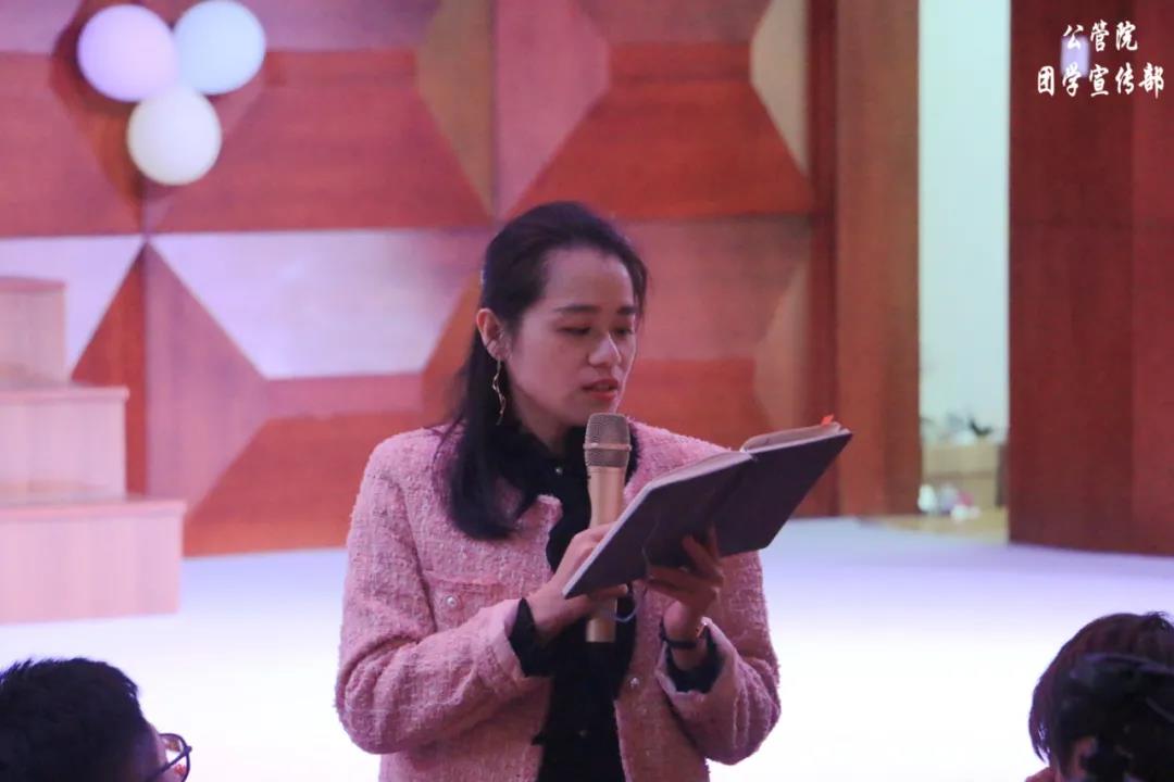 一首校歌过后,21级辅导员张佩怡老师致辞,她表示一个国家不能缺少灵魂,一个学校不能缺少文化底蕴,一个班级也不能缺少温情气氛。此次活动旨在增强班级的凝聚力,培养班级的团队精神,也是给同学们一个展示自我的舞台,并预祝此次活动能圆满举行!