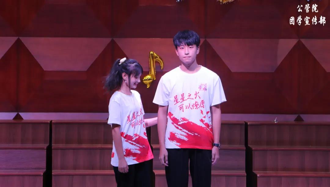 中场休息过后,第五个出场的是公共关系学一班,他们演唱的曲目是《夜空中最亮的星》。夜空中最亮的星,在每一个少年心里,指引着他们前行,在无数黑夜中追着属于自己的那道光。正如中国共产党在无数个黑夜中摸索前进,追寻心中的信仰,使中国走向正确的道路。