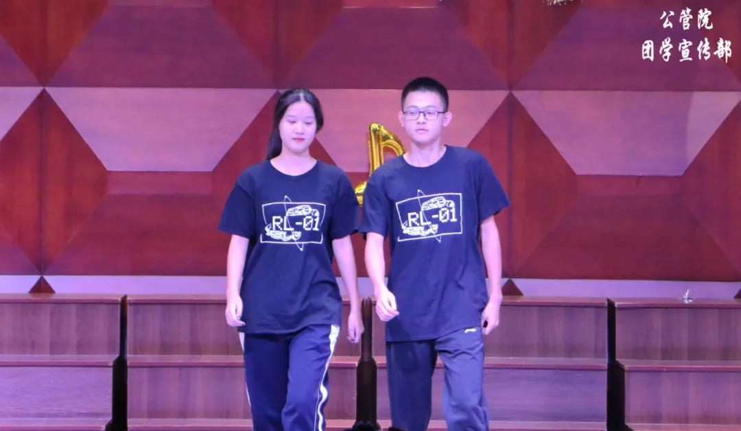 第二个出场的是文化产业管理二班,他们的班服以白色为底,白色象征着纯洁与正直,寄托着大家的美好祝愿。班服正面印着宇航员在太空上探索的图案,代表勇敢和自由,这与文管人的精神一脉相通,寓意着探索未知的热情以及打破常规的勇气!