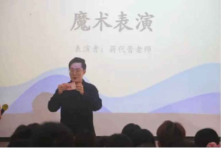 随后,蒋代晋老师带来了精彩的魔术表演,手指翻飞间,一张纸钞成功“一分为二”,变为两张纸钞,赢得了在场观众的热烈掌声。