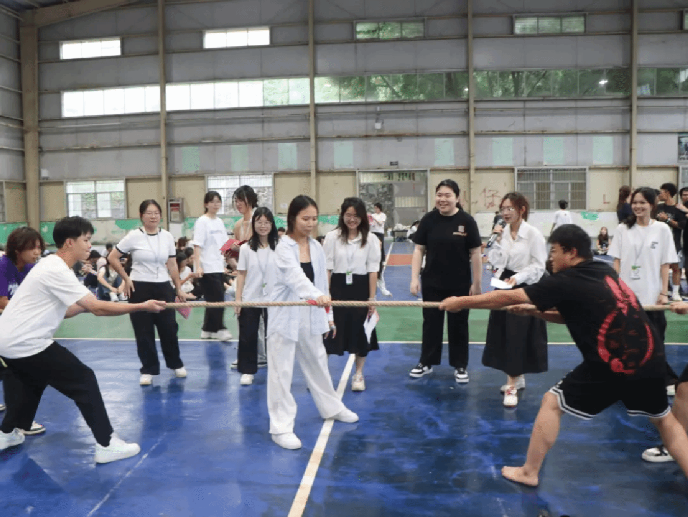 2024年10月9日,威廉希尔中文网站于西区体育馆顺利举办了“青春公管·携手同行”暨2024级学生素质拓展活动。在生活中,人与人之间需要沟通和信息的共享,需要相互配合和协调,形成力量的整合才能完成共同的任务。为了促进大家之间的合作与交流,丰富我们的大学校园生活,我们迎来了此次活动。希望大家秉承“友谊第一,比赛第二”的理念,在取得比赛胜利的同时,也收获自己的友谊!莅临本次活动的嘉宾有24级辅导员梁颖姿老师。