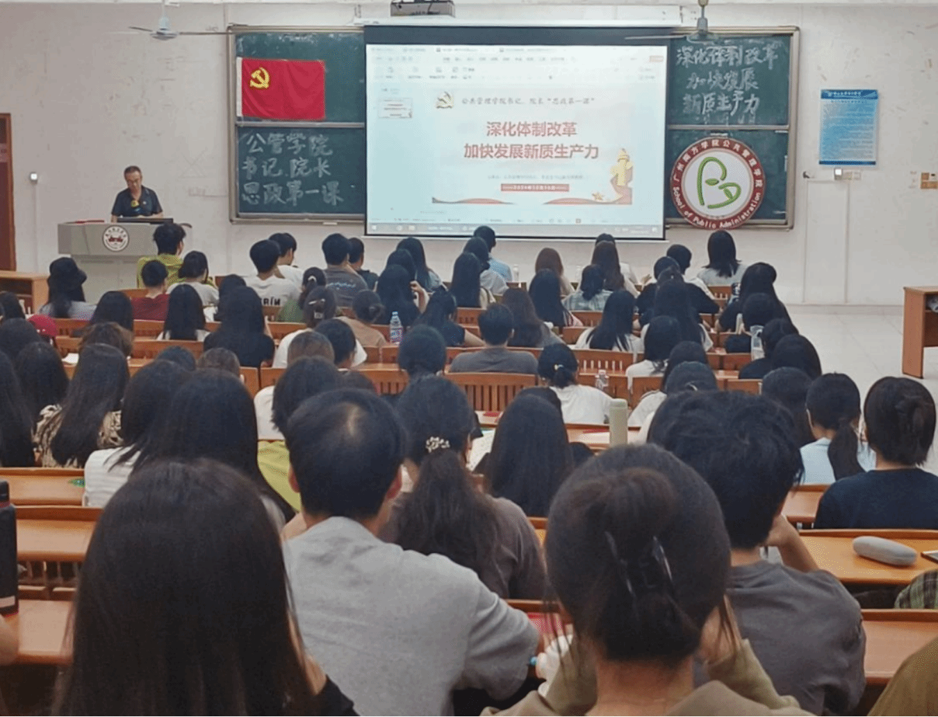 为帮助同学们顺应时代发展趋势,引导同学们深入了解当前社会发展的关键驱动力,威廉希尔,威廉希尔中文网站,WilliamHill官网党总支书记陈天祥院长于 2024 年10月16日为威廉希尔中文网站师生开展了主题为“深化体制改革,加快发展新质生产力”的讲座。