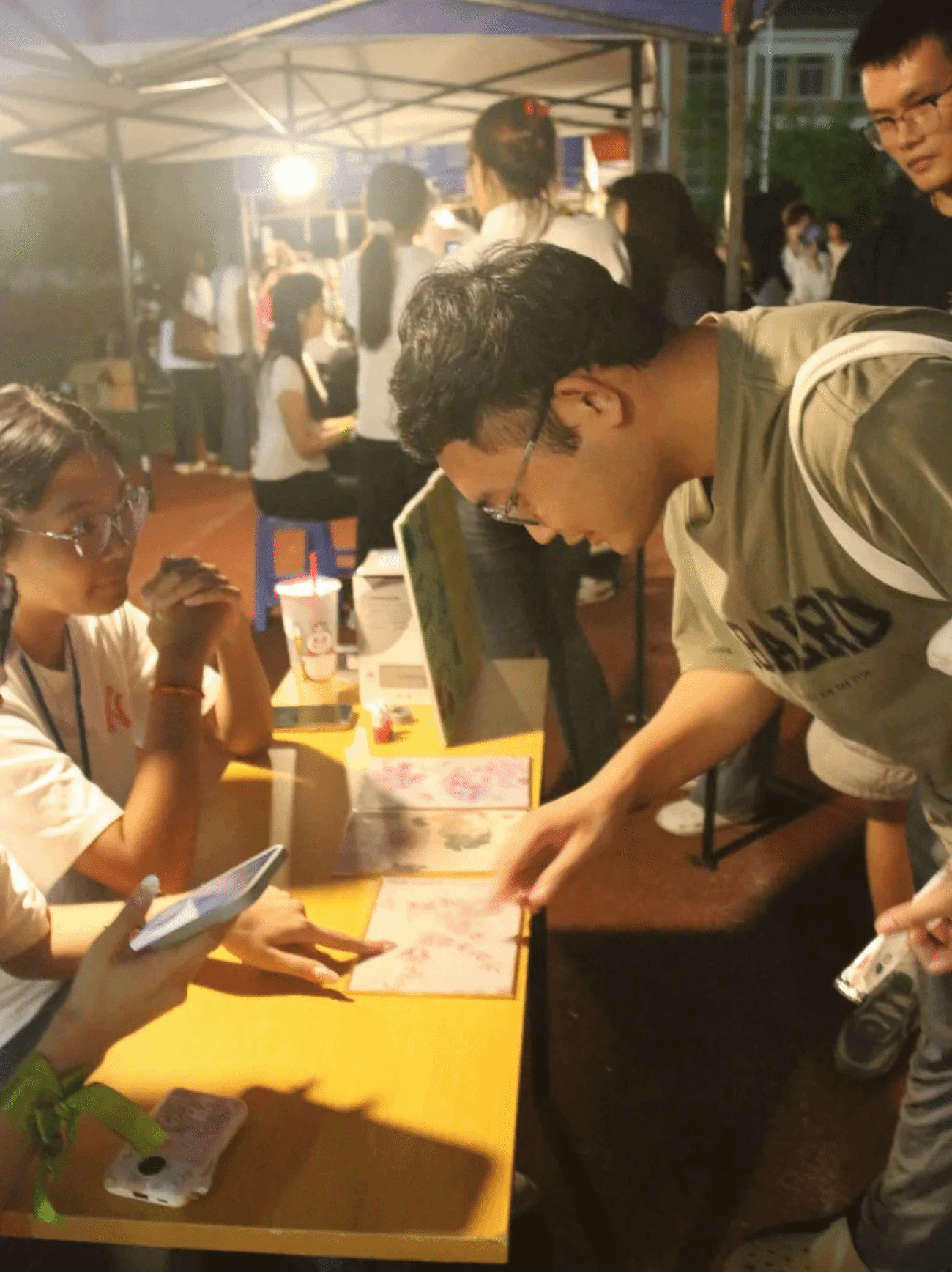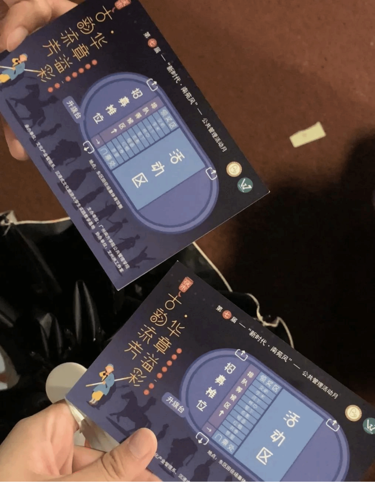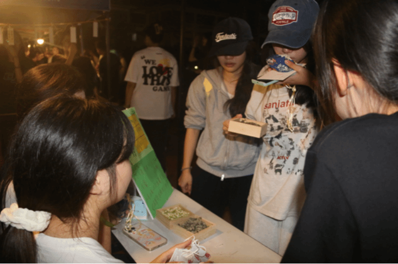 本届夜市沿袭往年门票玩法,定制了专属的夜市明信片门票,融合四大名著主题元素制作印章,供同学们参与活动游玩盖章,到最后一个摊位可兑换文州洲工作室文创小礼品。礼品兑换采用抽签形式抽取一二三等奖,更加增添了活动的趣味性。