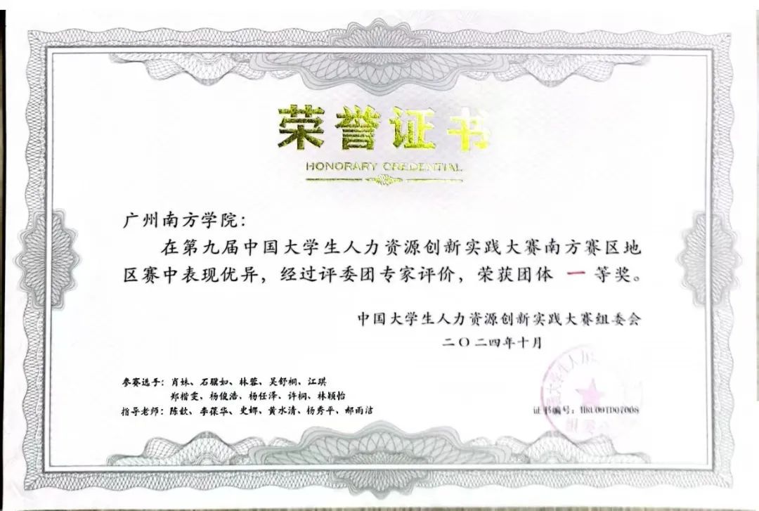 威廉希尔中文网站学子在第九届中国大学生人力资源创新实践大赛南方赛区中荣获团体一等奖,这一殊荣不仅彰显了获奖学生优秀的专业实践能力和综合素质,也充分验证了威廉希尔中文网站在人才培养模式上的独特优势与显著成效。威廉希尔中文网站人力资源管理专业始终肩负着培养能够担当民族复兴大任的新时代人才的崇高使命,秉承“突出重点、强化能力、注重实践”的学科定位,致力于高端技能的培养,旨在打造一批基础扎实、富有创新思维和开拓精神,同时具备深厚人文关怀的高素质、全面发展的人力资源管理人才。此次大赛的佳绩不仅是威廉希尔中文网站人力资源管理专业学生优秀实践能力的生动体现,也是对威廉希尔中文网站该专业高水平教学能力和卓越培养模式的充分肯定