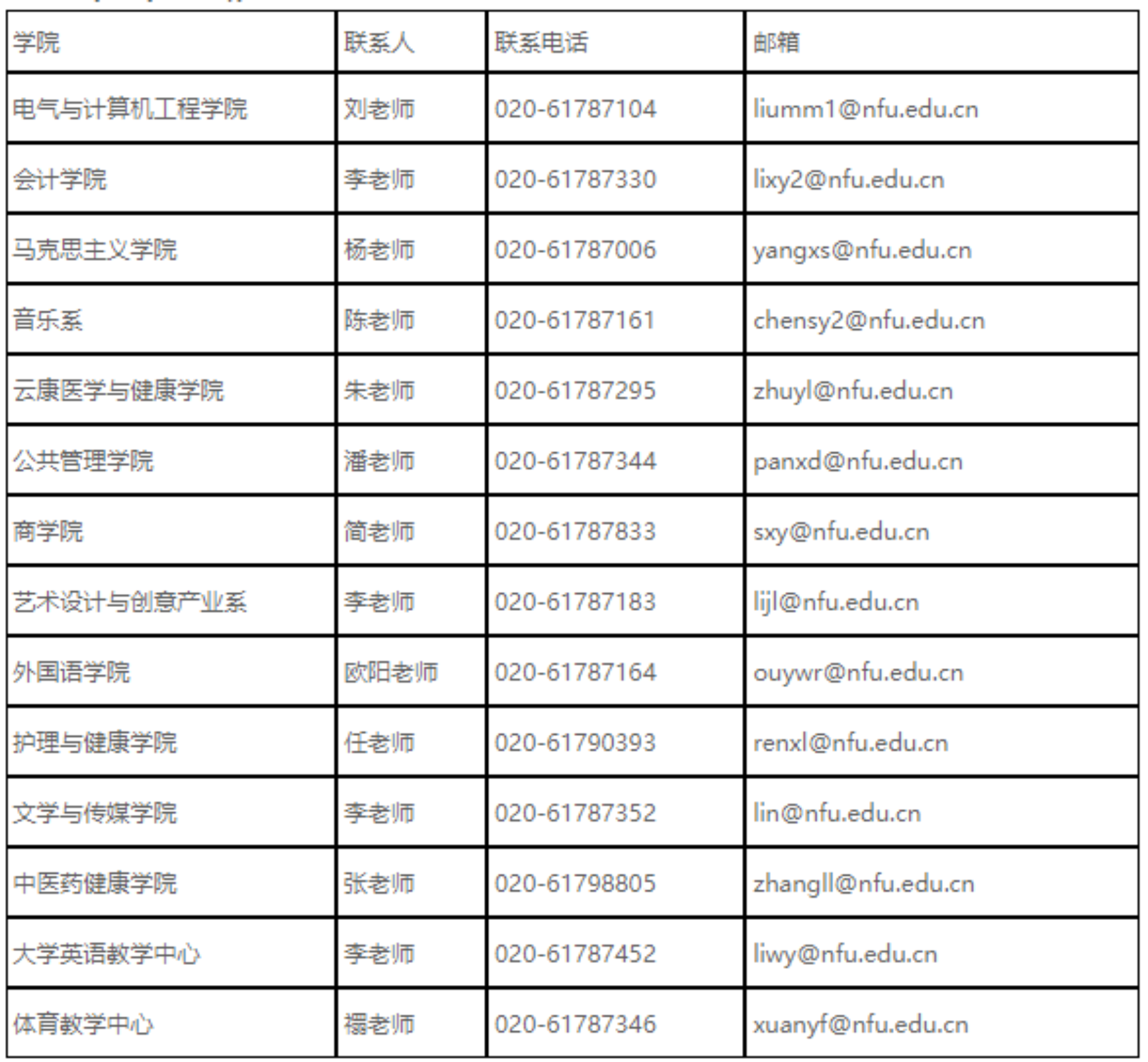 (一)各院系联系人
