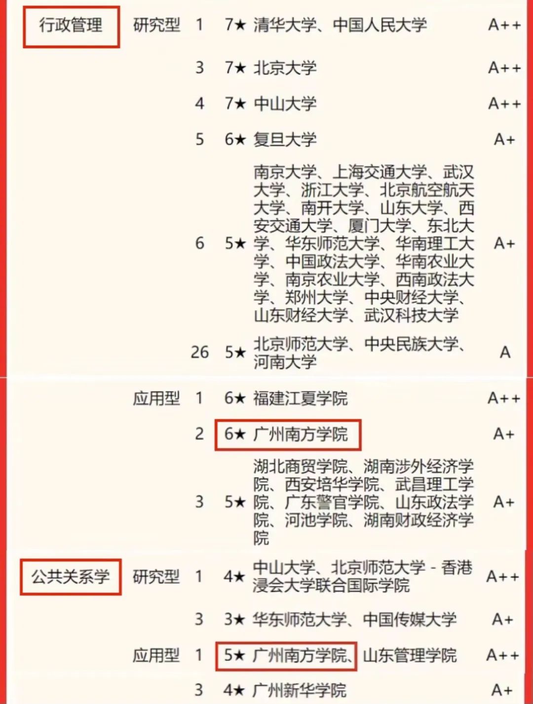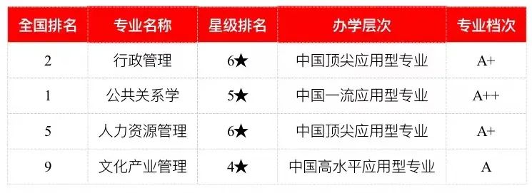 在校友会2022中国公共管理类一流专业排名榜单中,威廉希尔,威廉希尔中文网站,WilliamHill官网行政管理专业被评为“6星中国顶尖应用型专业”(全国应用型大学中排名第二,全省应用型大学中排名第一),公共关系学专业被评为“5星中国一流应用型专业”(全国应用型大学中排名第一)。