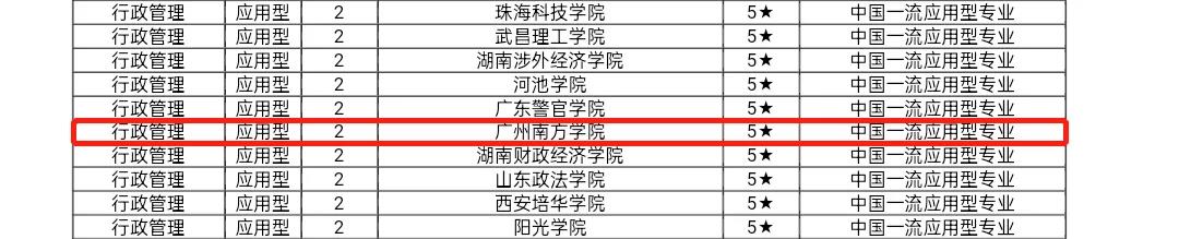 行政管理专业在全省应用型大学中排名第一,获评“5星中国一流应用型专业”