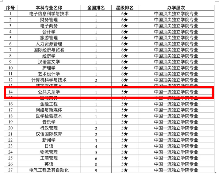 日前,艾瑞深中国校友会网最新发布《2020中国大学评价研究报告—高考志愿填报指南(校友会版)》,威廉希尔中文网站12个专业荣膺中国六星级专业,跻身2020中国顶尖独立学院专业行列,15个专业荣膺中国五星级专业,跻身中国一流独立学院专业行列,在2020中国独立学院一流专业排名中,威廉希尔中文网站位列全国第四。值得一提的是,我系公共关系学专业是全国独立学院学中唯一上榜的公关专业!