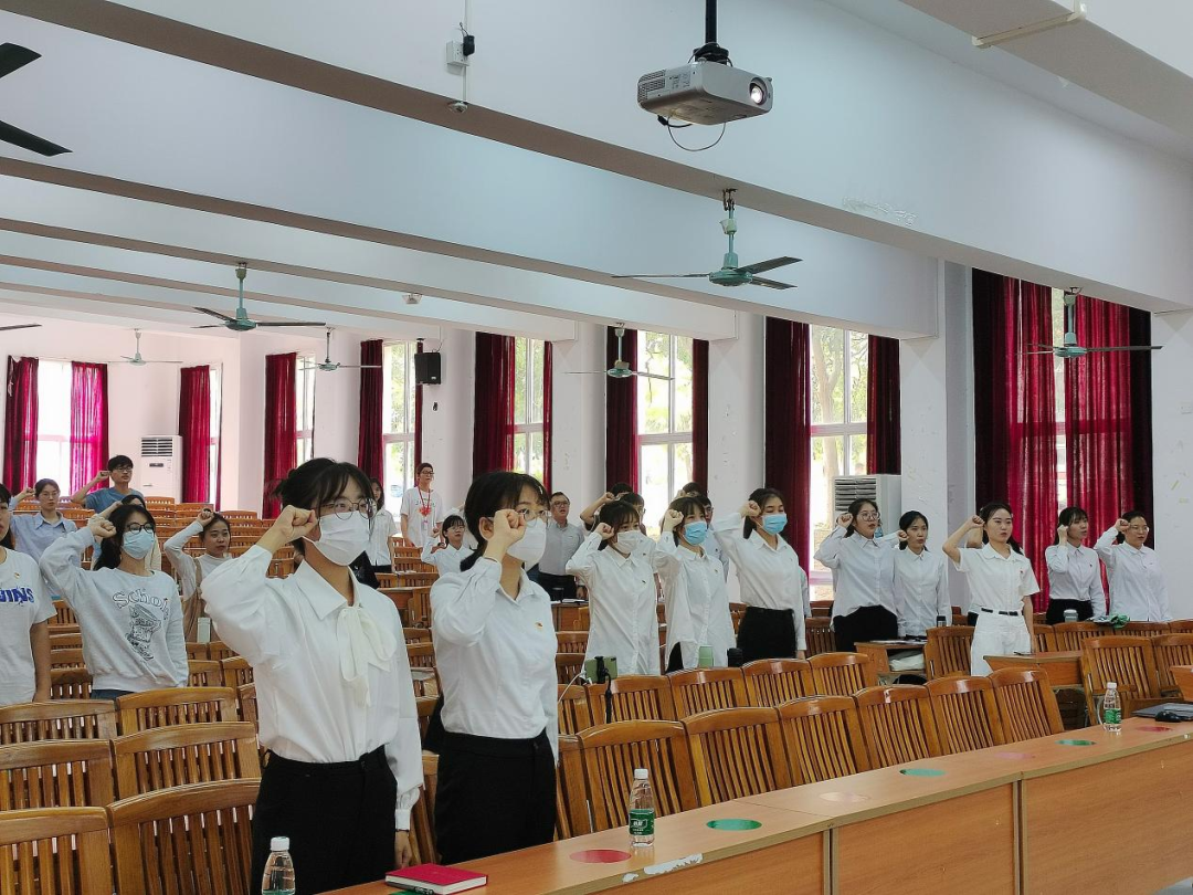 宣伟男同志为支部新接收的8名预备党员颁发党徽,并带领学生党支部全体党员和新通表的预备党员在党旗下进行宣誓仪式。全体党员在誓词中回顾入党初心、坚定入党信念、牢记党员使命。相信党员们在新的起点上能以更加严格的标准来要求自己,增强党员责任意识,在学习、工作、生活和实践当中发挥先锋模范作用,努力做一名合格的共产党员,为新时代党的建设贡献力量。