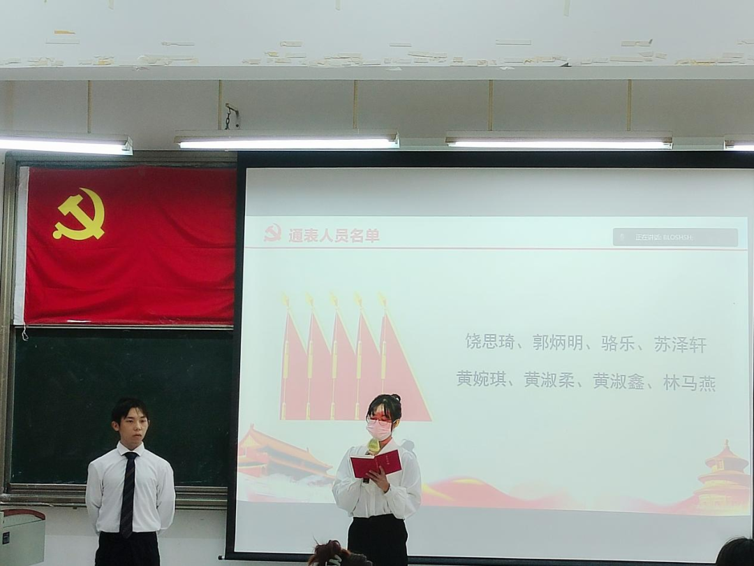 陈俊杰、江嘉明等29名预备党员依次上台汇报各自在预备期内的思想、学习、工作以及生活中的表现。随后,入党介绍人分别对29名预备党员在预备期内的表现情况作总结评价。接下来,大会采用无记名投票的方式对是否同意29名预备党员的转正申请进行了表决。经计票统计,支部与会党员一致同意29名同志按期转正。