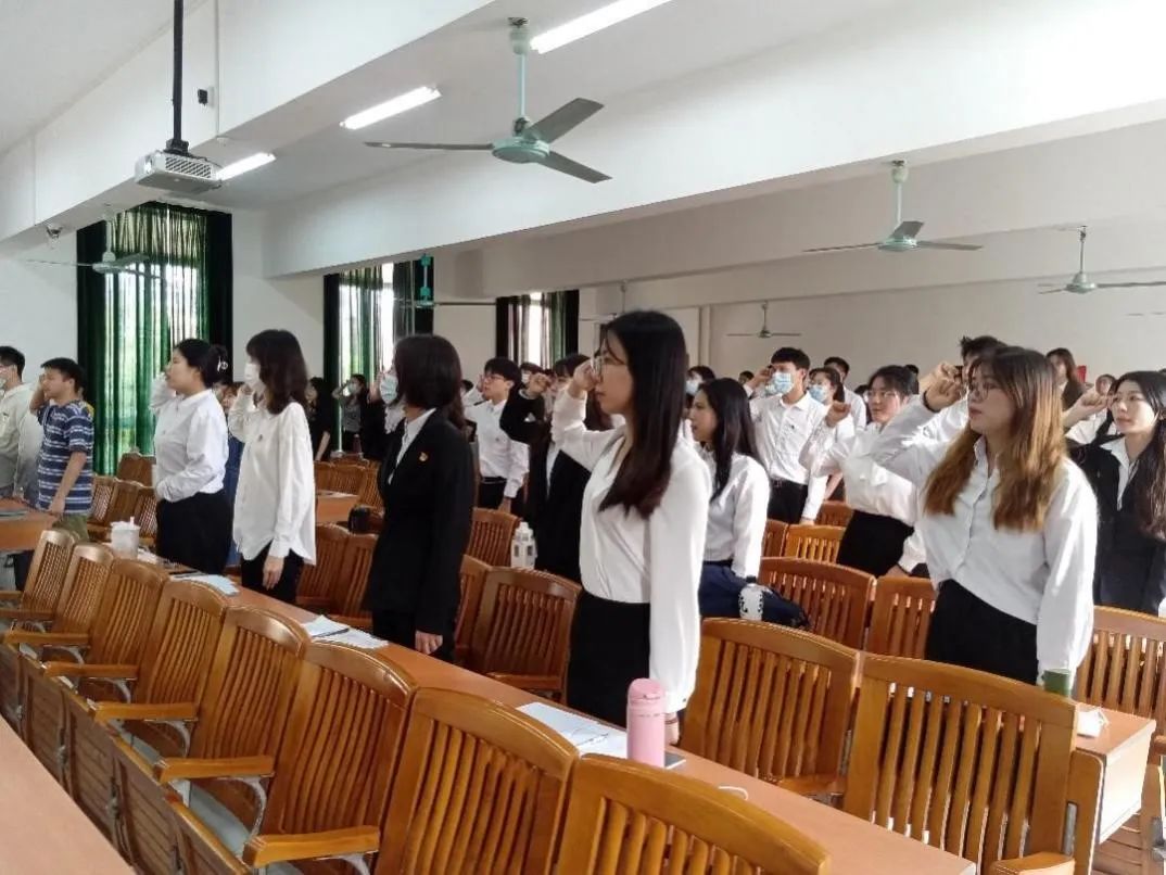 蔡全玲同志为14名预备党员颁发党徽,并带领学生党支部全体党员和新通表的预备党员在党旗下进行宣誓仪式。相信党员们能够永远铭记入党誓词中的警示和呼吁,在新的起点上更加严格要求自我,增强党员的责任意识,在学习、工作、生活和实践当中发挥先锋模范作用,履行对党的承诺,争做一名严守纪律、保持先进的合格党员。