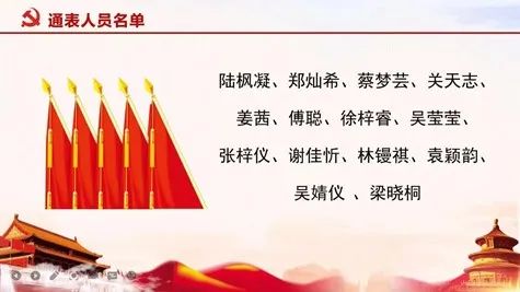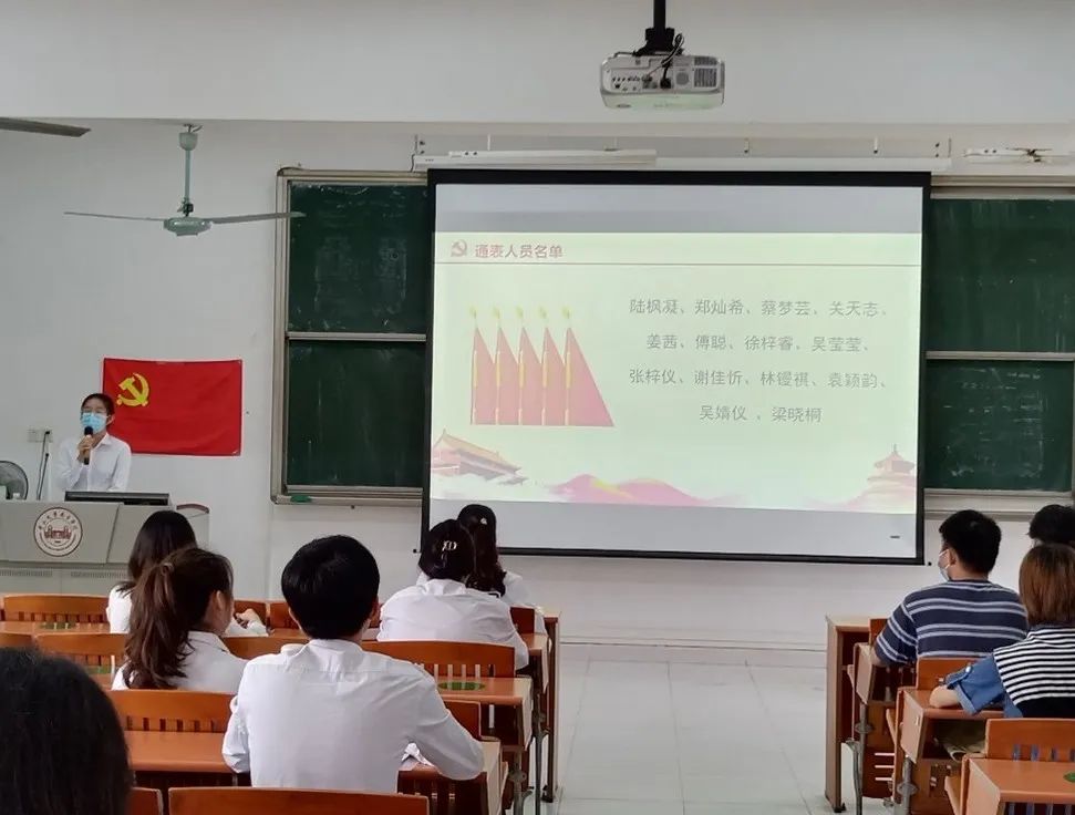 陆枫凝、郑灿希等14名发展对象依次就自身对党的认识、入党动机、个人履历、家庭和主要社会关系等情况进行汇报。随后,入党介绍人对14名发展对象在考察期内的表现做总结评价。接下来,大会通过无记名投票的方式,同意以下14名发展对象成为预备党员: