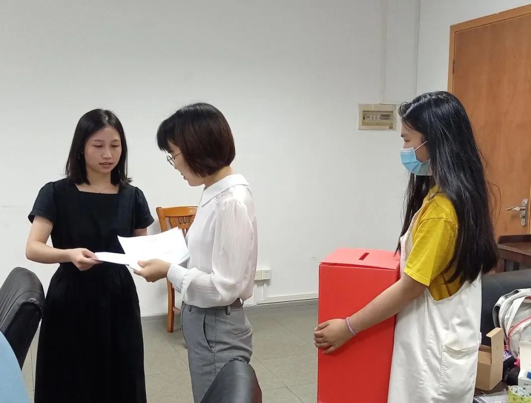 陈歆老师和曾欣老师就自身对党的认识、入党动机、本人履历、家庭主要社会关系情况等进行汇报,并向党组织说明了相关问题。随后,入党介绍人对两名发展对象在考察期内的表现作总结评价。接下来,大会通过无记名投票的方式,同意两名发展对象成为预备党员:
