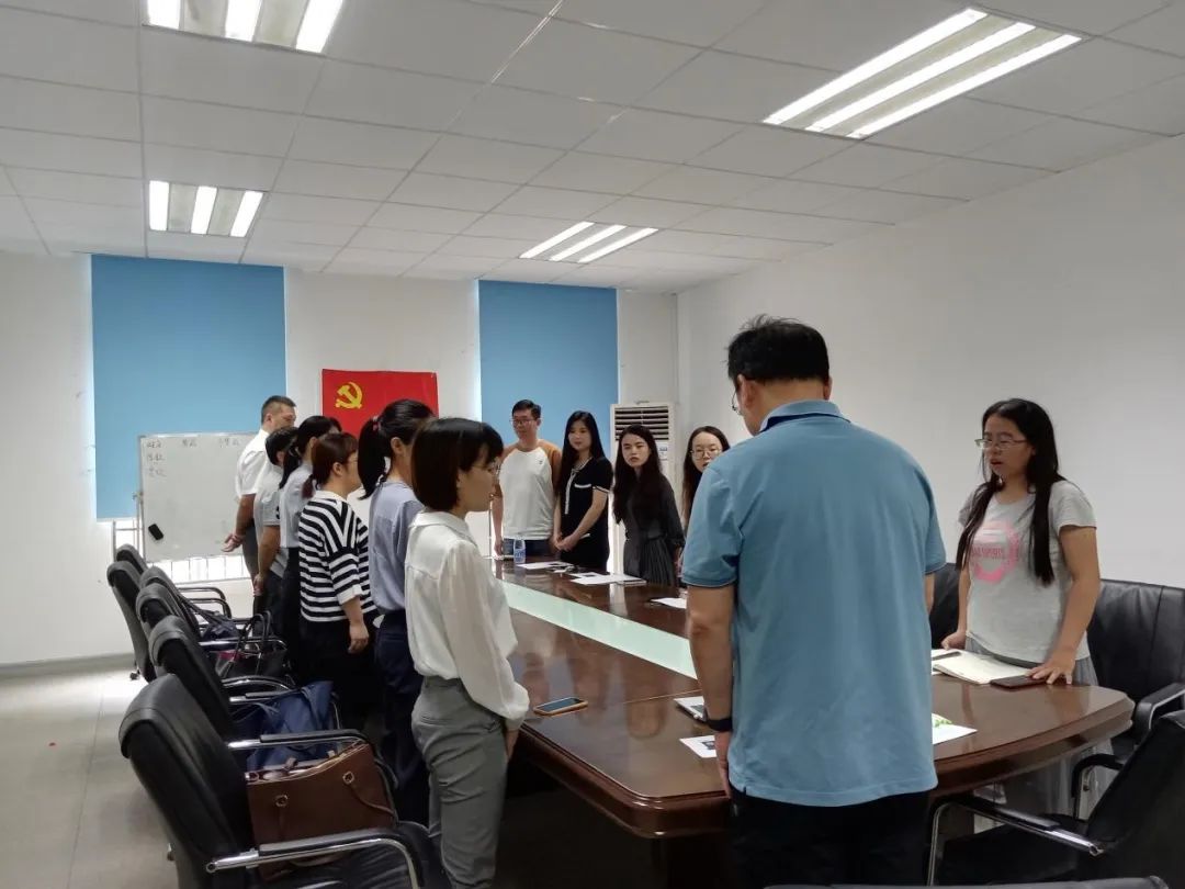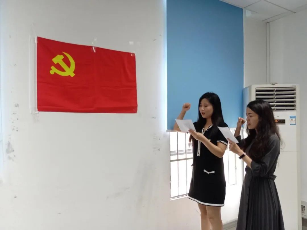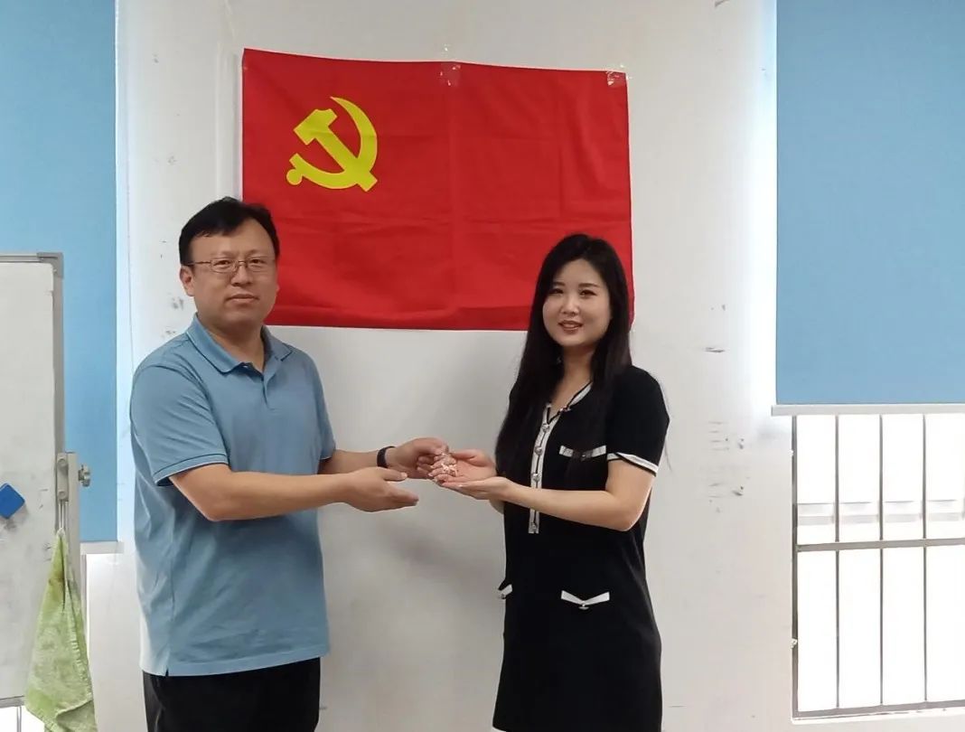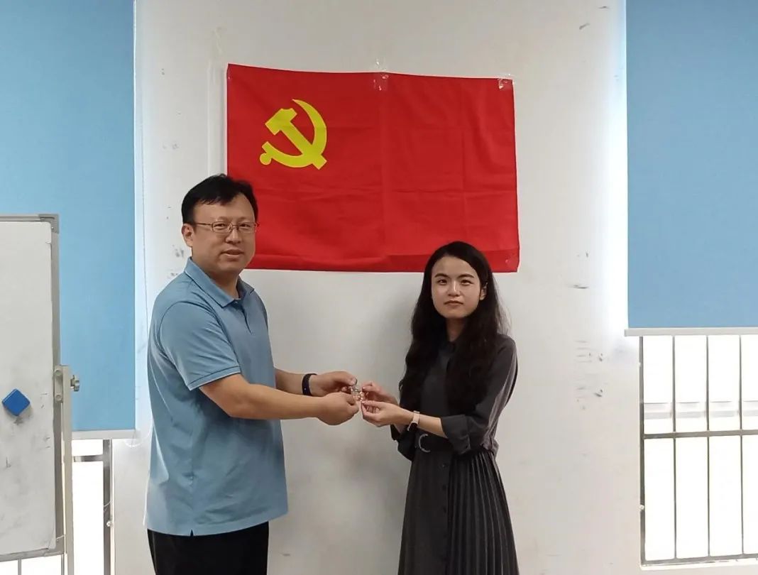 刘云东同志为预备党员颁发党徽。随后,陈歆、曾欣同志在党旗下进行宣誓。相信在今后的学习工作中,两位党员能时刻牢记自己对党组织的承诺,立足岗位,践行初心和使命,始终保持共产党员的高尚品质,严格要求自己,并在实践中为群众做出表率,使自己成为一名真正的共产党员。