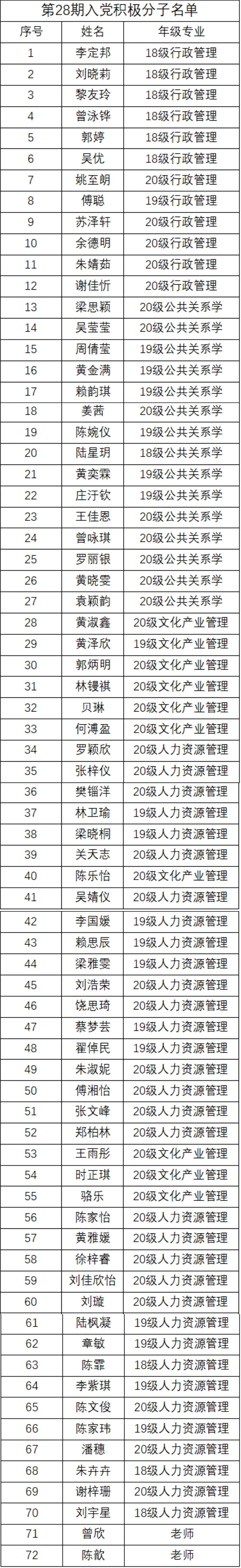经威廉希尔中文网站支部委员会决定,拟确定以下72名同志为威廉希尔中文网站党总支第28期积极分子。公示如下:
