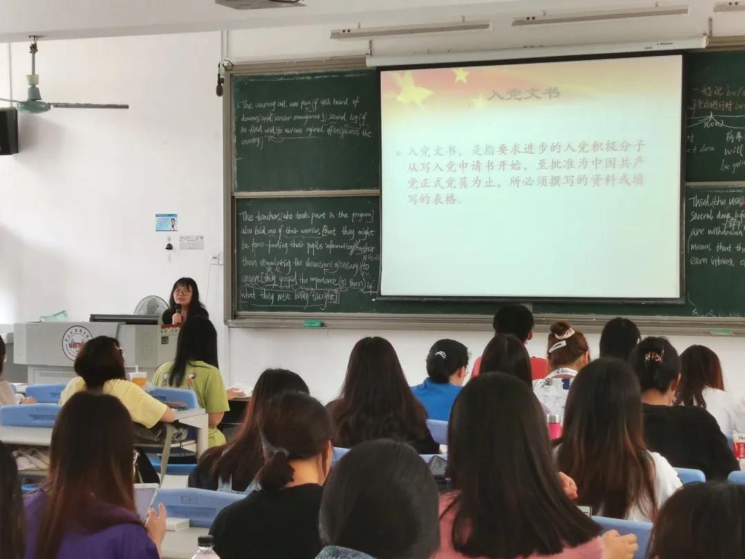 吴童老师分别从入党申请书、思想汇报、自传、入党志愿书和转正志愿书等入党常用文书进行讲解,使得发展对象们更加清晰地了解文书写作的规范性。吴童老师强调,入党文书要结合自身的实际情况去撰写,做到事实求是,严肃认真。作为一名发展对象,更要在日常生活中要时刻提高思想觉悟,加强党性修炼,做到从思想上和行动上入党。