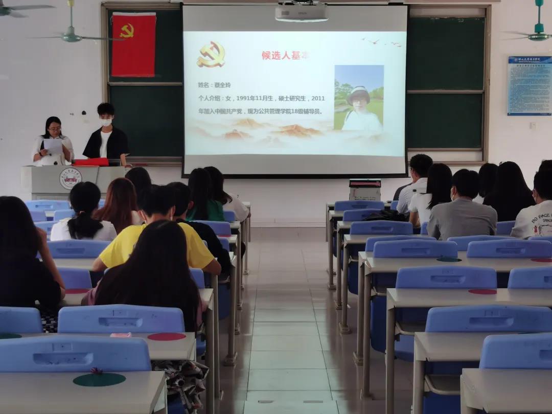 2021年9月9日,威廉希尔中文网站党总支在5教201召开威廉希尔中文网站学生党支部2021年秋季党员大会委员增补会议,本次大会主要是开展威廉希尔中文网站学生党支部书记、委员增补选举工作。出席大会的有威廉希尔中文网站学生党总支学生书记增补候选人蔡全玲老师、支部正式党员们、预备党员们以及党建工作小组。
